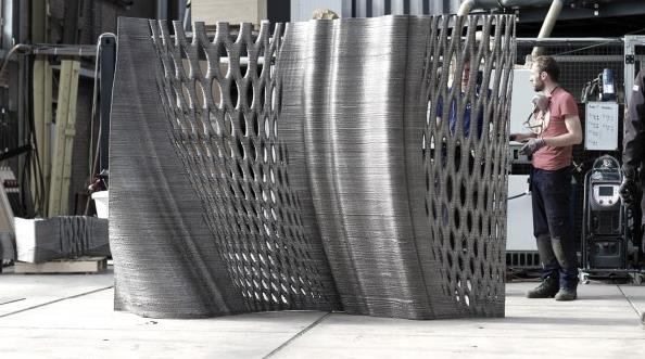 他承認(rèn),在95%的工業(yè)建筑項(xiàng)目中都不會(huì)用到3D打印的鋼材。在這種情況下,他們只是需要的只是簡(jiǎn)單結(jié)構(gòu)的鋼材。但剩下的5%是一個(gè)巨大的市場(chǎng)。例如,離岸石油鉆井平臺(tái)的鋼支撐結(jié)構(gòu)很難進(jìn)行設(shè)計(jì)。有了3D打印技術(shù),你可能只需要兩個(gè)工程師來(lái)監(jiān)視8個(gè)機(jī)器人去建造相關(guān)的部件,而不是要用一個(gè)工程師團(tuán)隊(duì)來(lái)建造。此外,為石油鉆井平臺(tái)等大型項(xiàng)目制造部件最耗時(shí)的步驟之一是削減關(guān)鍵部件,以節(jié)省重量。將重量重6000公斤減少到5000公斤,所需要的起重機(jī)就完全不同了,成本要低得多。使用3D打印技術(shù)制造類(lèi)似的部件,不僅能夠很好的把其錯(cuò)綜復(fù)雜的內(nèi)部結(jié)構(gòu)制造出來(lái),還能極大地減少重量,比例可能會(huì)在50%。此外,還不需要額外的剃須工作。同樣,這也適用于大型的高性能部件,比如貨船上的轉(zhuǎn)子。這會(huì)節(jié)約大量的能源,而且零部件的外觀都相同,只是把內(nèi)部以最優(yōu)的方式掏空了。