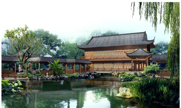 (2)尊重自然,追求天人合一的藝術(shù)效果。中國傳統(tǒng)園林設(shè)計(jì)思想的根本特征是“自然”,諸如“有若自然”、 “妙在自然”、 “宛若自然”之吾,和傳統(tǒng)繪畫藝術(shù)一樣,中國古典園林也是要求“外師造化,中得心源”,力求營造出人與自然和諧共處的園林景致。