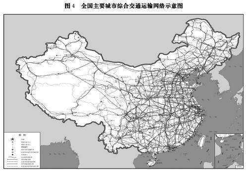 圖4 全國(guó)主要城市綜合交通運(yùn)輸網(wǎng)絡(luò)示意圖