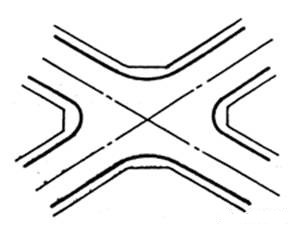 兩條道路垂直或近似垂直相交;其形式簡(jiǎn)單,交通組織方便,街角建筑易于處理,適用范圍廣,是最基本的交叉口形式。