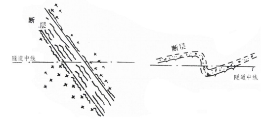 斷層破碎帶是常見的不良地質(zhì)段,斷層帶內(nèi)巖體破碎,呈塊石、破碎或角礫狀,甚至呈斷層泥,巖體強(qiáng)度低,圍巖自穩(wěn)能力差,施工困難。其施工難度取決于斷層的性質(zhì)、斷層破碎帶的寬度、填充物、含水性和斷層本身的活動(dòng)性以及隧道軸線和斷層構(gòu)造線方向的組合關(guān)系等因素。