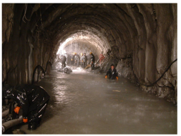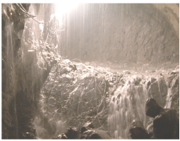 有時(shí)遇到填滿飽含水分的充填物溶槽,坑道掘進(jìn)至邊緣時(shí),充填物不斷涌入坑道,難以遏止,甚至地表開裂下沉,山體壓力劇增;有的溶洞、暗河迂回交錯(cuò)、分支錯(cuò)綜復(fù)雜、范圍寬廣,處理十分困難。