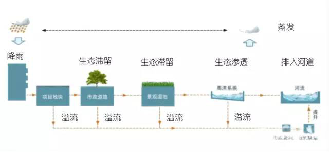 當雨峰值過大的時候,地面排水與地下雨水管渠相結合的方式來實現一般排放和超標雨水的排放,避免內澇等災害。經過雨水花園、生態(tài)滯留區(qū)、滲透池凈化之后蓄起來的雨水一部分用于綠化灌溉、日常生活,一部分經過滲透補給地下水,多余的部分就經市政管網排進河流。不僅降低了雨水峰值過高時出現積水的幾率,也減少了第一時間對水源的直接污染。