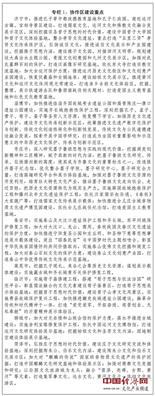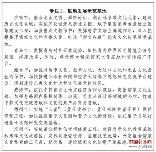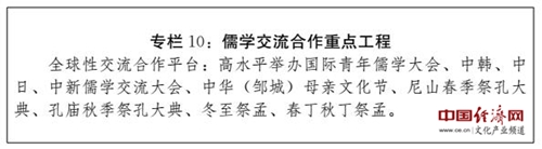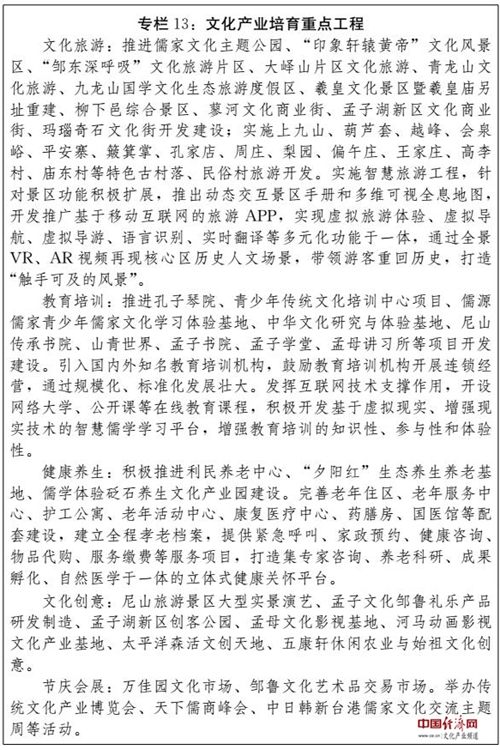 (四)建設(shè)全國文化經(jīng)濟融合發(fā)展示范區(qū)。充分發(fā)揮文化引領(lǐng)、滲透和支撐作用,系統(tǒng)推進文化資源開發(fā),強化文化品牌載體功能,推進文化與相關(guān)產(chǎn)業(yè)深度融合,大力發(fā)展文化產(chǎn)業(yè),提升文化產(chǎn)業(yè)園區(qū)、特色基地建設(shè)水平,在更高層次上打造享譽國內(nèi)外、彰顯儒家文化永恒魅力的旅游休閑圣地、教育培訓(xùn)基地、健康養(yǎng)生福地和文化創(chuàng)意高地。