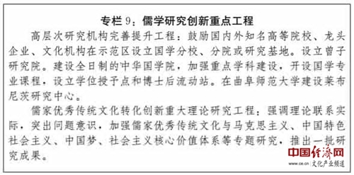 (一)建設(shè)高層次研究機構(gòu)。加快打造世界儒學(xué)研究交流中心,提升文獻收集、信息共享、學(xué)術(shù)研究、人才培養(yǎng)、博物展覽等綜合功能,使我國在東亞儒家文化圈中居于主動,在世界儒學(xué)傳播和研究中始終保持充分話語權(quán)。以孔子研究院、孟子研究院為引領(lǐng),依托山東大學(xué)、山東師范大學(xué)、曲阜師范大學(xué)、濟寧學(xué)院、山東社科院等院校,建立完善儒學(xué)專門研究機構(gòu)體系。發(fā)揮中國孔子基金會作用,探索建設(shè)中國儒學(xué)中心。堅持馬克思主義立場、觀點、方法,采取歷史唯物主義態(tài)度,與理論工作“四大平臺”建設(shè)相銜接,結(jié)合時代要求推動儒家優(yōu)秀傳統(tǒng)文化創(chuàng)新發(fā)展。實施儒家優(yōu)秀傳統(tǒng)文化轉(zhuǎn)化創(chuàng)新重大理論研究工程,突出理論與實際相結(jié)合,加強相關(guān)重點學(xué)科專業(yè)建設(shè),承擔(dān)更多國家級和省部級研究項目,重視保護和發(fā)展具有重要文化價值和傳承意義的“絕學(xué)”、冷門學(xué)科。提升《孔子學(xué)刊》《孔子文化季刊》等儒學(xué)研究期刊辦刊水平,薈萃國內(nèi)外各儒家學(xué)派最新理論研究成果,推動多語種出版發(fā)行,打造成為集成共享的創(chuàng)新成果高端平臺。