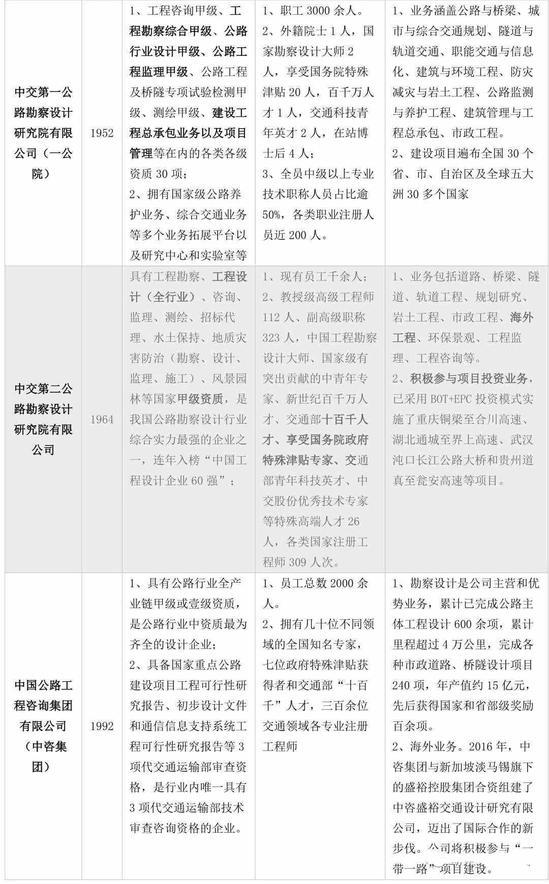 表1:中交體系下與公路勘察設計相關的全資子公司基本情況