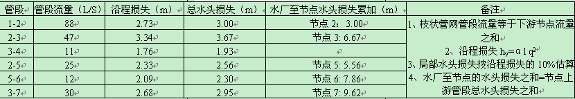 ①沿程水頭損失hy=αl q2, 式中α為管道比阻,與管徑及管內壁粗糙系數有關,l為管道長度,q為流量;