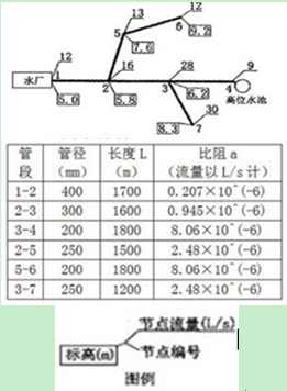 例1: 現以下圖所示給水管網為例,計算說明。