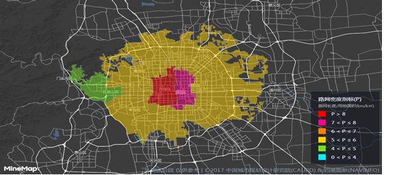 北京路網密度形態呈團塊形態