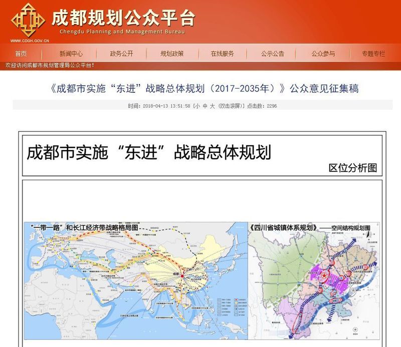 日前,成都規劃局官網公布了《<成都市實施“東進”戰略總體規劃(2017-2035年)>公眾意見征集稿》,從定位、目標、產業、生態等各方面規劃,詳細闡釋了 “ 東進 ” 到底該怎么 “ 進 ”