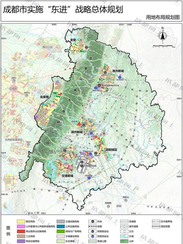 今年,在龍泉山城市森林公園規劃后,東進區域范圍有所調整,涵蓋金堂縣、簡陽市全域、龍泉驛區車城大道以東區域以及青白江區、天府新區直管區位于龍泉山森林公園范圍內的區域(共涉及7個鄉鎮),總面積為3976平方公里。