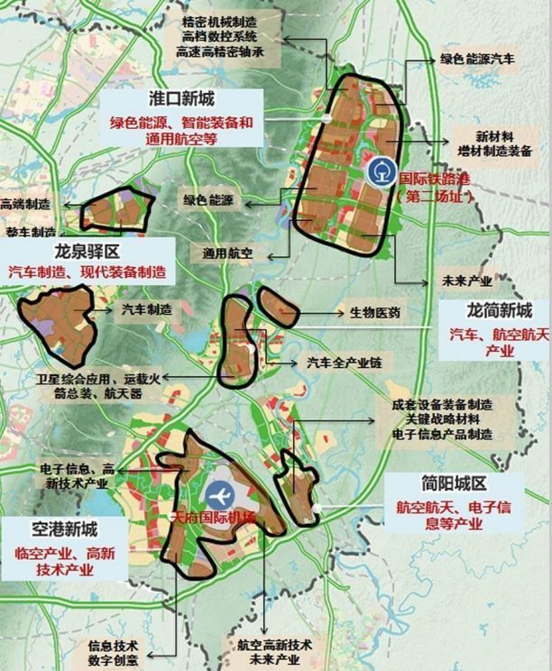 因此,東進區域將發揮空港帶動作用和區域優勢,集聚高端和新興產業。發揮天府國際機場的強大帶動能力,集聚高端臨空產業