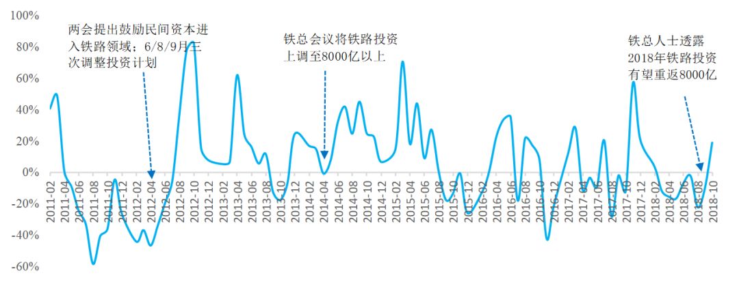 歷次修鐵路投資規(guī)劃后,鐵路投資增速均快速上行,因此本次鐵路投資增速有望繼續(xù)攀升: