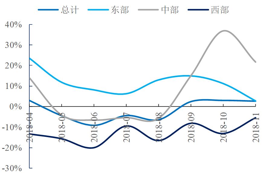 從鐵路切換到道路,道路投資在基建投資中占比較高。2018年1-10月道路固定資產(chǎn)投資共計3.59萬億萬億,在基建投資中占比達(dá)到31%。公路投資增速與資金面情況息息相關(guān)。2018Q2以來,西部地區(qū)公路投資降幅收窄,固定資產(chǎn)投資持續(xù)下滑。