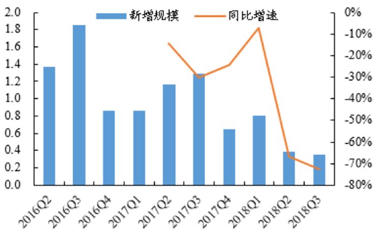 2017Q4后單季新增入庫規(guī)模持續(xù)降低(萬億)