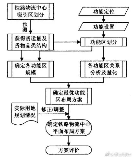 根據鐵路物流園的功能設置,劃分鐵路物流園功能區,并結合預測得到的鐵路貨運量對各功能區面積進行計算,確定鐵路物流園各功能區的規模;對各功能區之間的關系進行分析和量化,構建功能區布局優化模型,在給定空間內對功能區進行布局優化,根據實際用地情況對功能區布局方案進行修正和調整,獲得最終平面布局方案,并對方案進行評價。