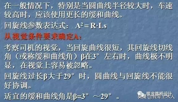 回旋線的半徑減小得最快,而三次拋物線則減小的最慢。從保證汽車平順過渡的角度看,三種曲線都可以作為緩和曲線。