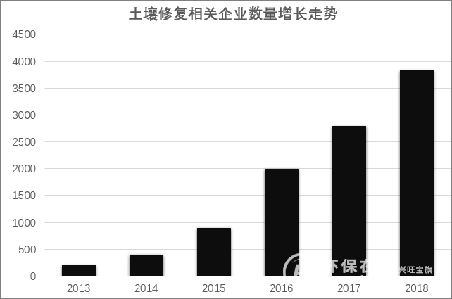 土壤修復相關企業數量增長走勢圖。資料來源:公開數據整理