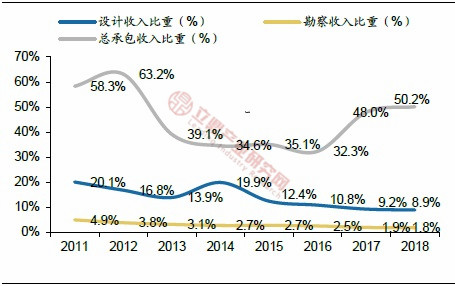 ——隨著總承包模式的推廣和PPP模式的快速推進(jìn),設(shè)計(jì)行業(yè)發(fā)展趨勢使工程總承包的收入比重提升。
