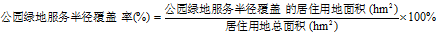 計(jì)算方法:公園綠地服務(wù)半徑覆蓋率=公園綠地服務(wù)半徑覆蓋的居住用地面積/居住用地總面積×100%
