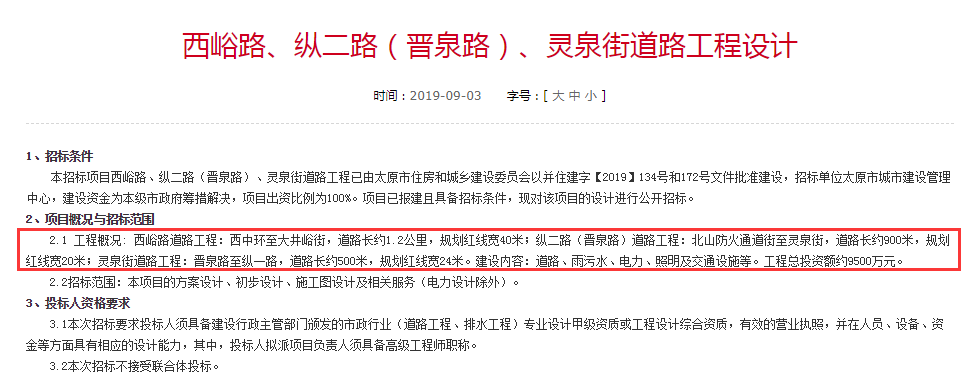 太原又將修建三條道路 設(shè)計(jì)勘察開始招標(biāo)