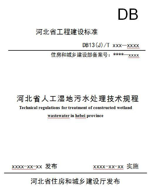 河北省工程建設(shè)標準《河北省人工濕地污水處理技術(shù)規(guī)程》(征求意見稿)