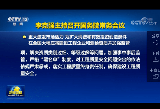 在全國大幅壓減建設工程企業(yè)和測繪資質(zhì)并加強監(jiān)管,更大激發(fā)市場活力,為擴大消費和有效投資創(chuàng)造條件。