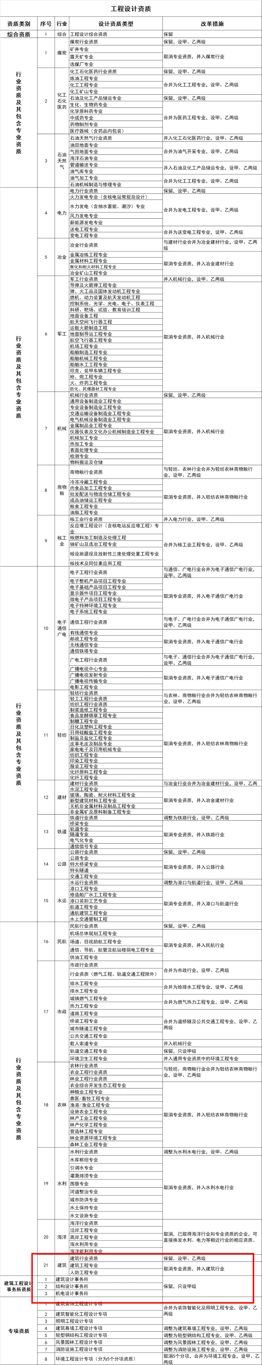 2、工程設計資質(zhì)。保留綜合資質(zhì)。對部分行業(yè)資質(zhì)進行整合。