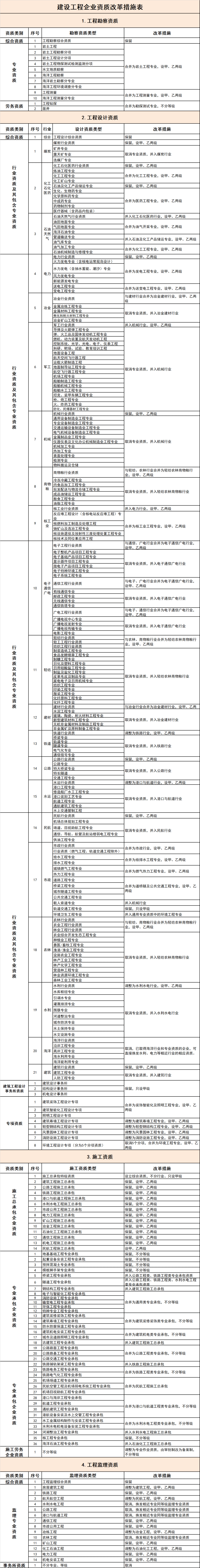 1、 建設工程企業(yè)資質(zhì)改革措施表