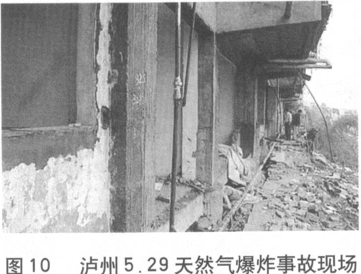1.2006年8月30日上午,重慶市南岸區(qū)在進(jìn)行道路改造施工時(shí),挖掘機(jī)不慎將天然氣主管道挖破,導(dǎo)致天然氣猛烈外噴,氣柱高達(dá)近十米。事故發(fā)生后,上千戶居民被緊急疏散,未造成人員傷亡,當(dāng)?shù)鼐用竦娜粘I钍艿酵庥绊憽?br /> 2、2004年5月29日19時(shí)45分,瀘州市納溪區(qū)炳靈路15號(hào)居民樓人行道下,突然發(fā)生劇烈的天然氣爆炸事故,造成5人死亡,35人不同程度受傷,附近一樓10余居民的家園被毀,臨街一樓12間門面受損,近50米長范圍內(nèi)的街道被震得一片狼藉。事故的原因是:管道局部的防腐層受到外力破壞,導(dǎo)致腐蝕穿孔,該位置正好位于民樓附一層與道路堡坎形成的窄縫中,地勢(shì)較低,聚集大量天然氣,因氣候變化因素發(fā)生膨脹而釋放至窄縫外,與空氣形成爆炸性氣體,遇人行道上不明火源而引發(fā)爆炸。