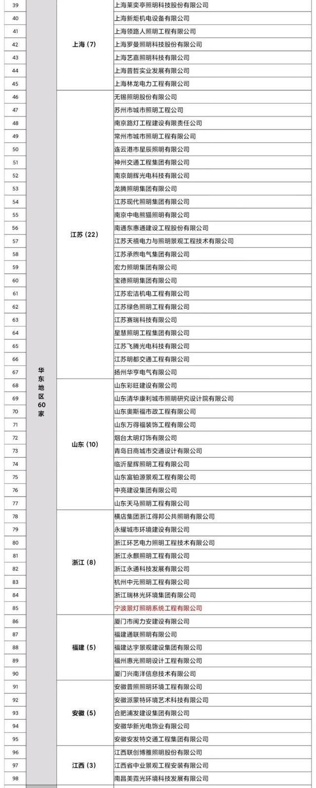 截止目前,全國擁有照明雙甲資質的企業達到166家,分布在我國七大區域,其中華南38家,華東60家,華北18家,華中21家,西北8家,西南17家,東北4家。