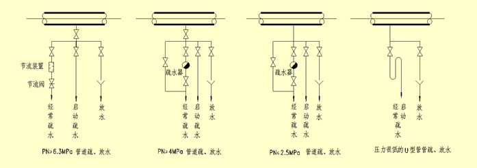 PN≥6.3MPa:管道經常疏水宜裝設節流裝置或疏水閥,節流裝置后的閥門用節流閥;