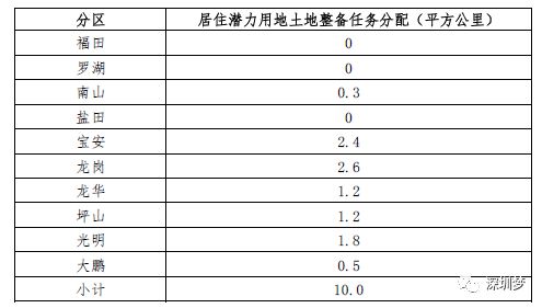 4.加大住房保障力度,通過城市更新和土地整備持續穩定提供商品住房、公共住房和配套宿舍,規劃期內實現供應商品住房建筑面積不少于3000萬平方米,力爭通過土地整備完成居住潛力用地不少于10平方公里,通過城市更新和土地整備規劃籌集公共住房和配套宿舍面積不少于700萬平方米。