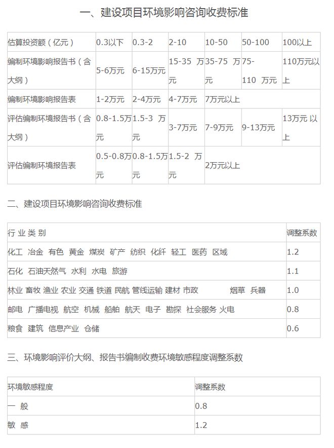 環(huán)境影響咨詢?nèi)≠M可參考《建設項目環(huán)境影響評價收費標準》(計價格〔2002〕125號),以估算投資額為計費基數(shù),根據(jù)建設項目不同的性質和內(nèi)容,采取按估算投資額分檔定額方式計費。