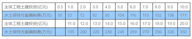 水土保持咨詢服務取費可參考《關于開發(fā)建設項目水土保持咨詢服務費用計列的指導意見》(保監(jiān)〔2005〕22號),其中可行性研究階段的開發(fā)建設項目水土保持方案編制費可參考下表標準計列。