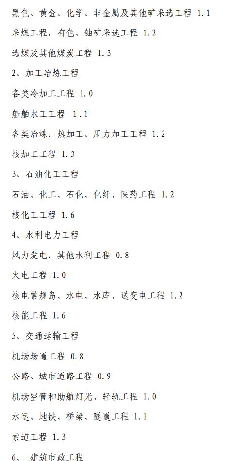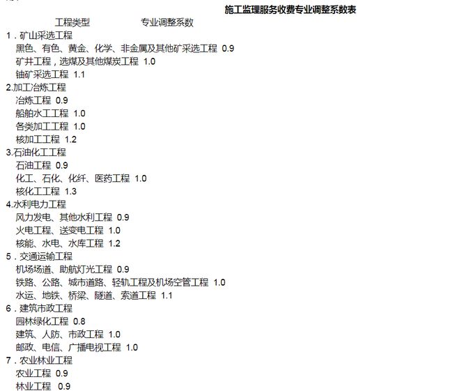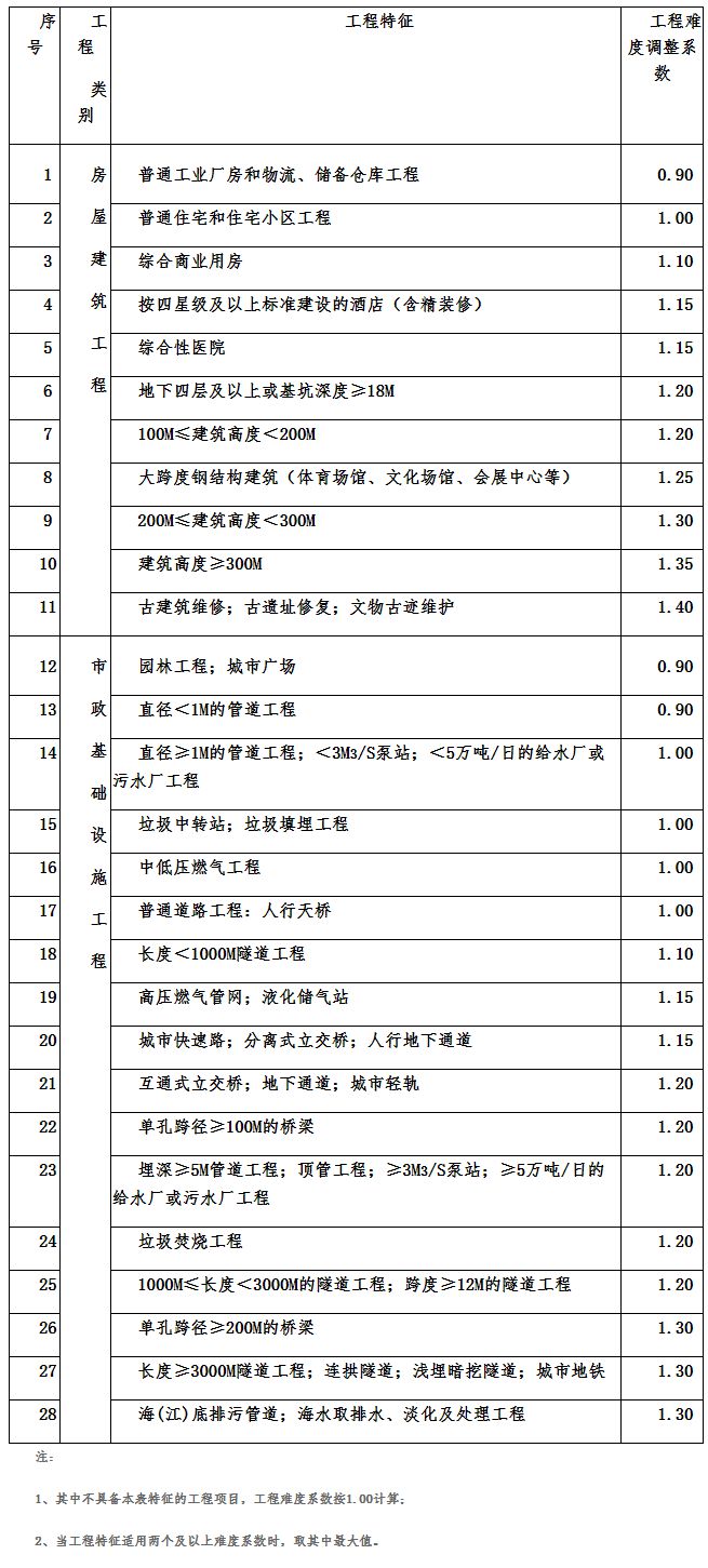 工程復雜程度調(diào)整系數(shù):0.8~1.2(工程復雜程度具體調(diào)整系數(shù)由工程咨詢機構與委托單位根據(jù)各類工程情況協(xié)商確定)。