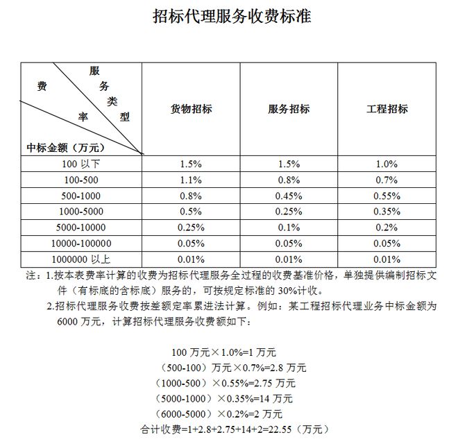 招標代理服務取費可參考《國家計委關于印發(fā)<招標代理服務收費管理暫行辦法>的通知》(計價格〔2002〕1980號),采用差額定率累進計費方式。