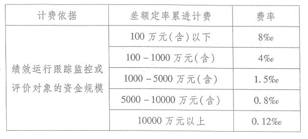 全咨單位參與預算績效管理服務取費可參考地方收費標準,如湖北省地方標準——《湖北省財政廳關于印發(fā)<湖北省第三方機構參與預算績效管理工作暫行辦法>的通知》(鄂財績規(guī)〔2014〕3號),績效運行跟蹤監(jiān)控和績效評價全部委托服務采用計件收費方式的,以績效運行跟蹤監(jiān)控或評價對象的資金規(guī)模為計費依據(jù)。