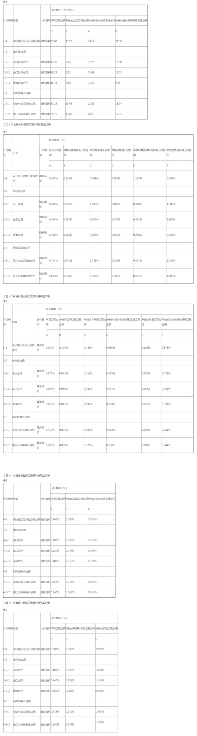 (2)工業(yè)與民用建筑工程,當建筑面積少于2萬平方米時,按2萬平方米作為計價基礎計算建筑信息模型(BIM)技術應用費用;市政道路工程、軌道交通工程、地下綜合管廊工程的造價少于1億元時,按1億元作為計價基礎計算建筑信息模型(BIM)技術應用費用;園林景觀工程的造價少于1000萬元時,按1000萬元作為計價基礎計算建筑信息模型(BIM)技術應用費用。