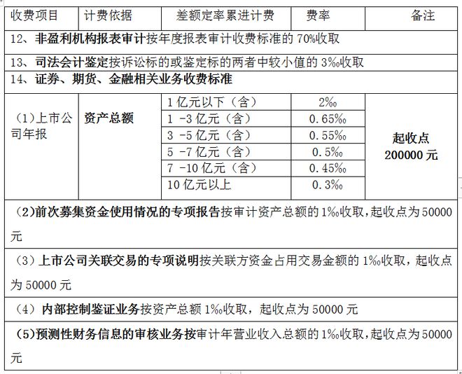 證券、期貨、金融相關評估業(yè)務、以訴訟、仲裁為目的的評估業(yè)務、以無形資產(chǎn)為評估對象的評估業(yè)務為特殊評估業(yè)務,收費標準可上浮40%,起收點為10000元。