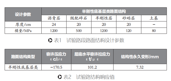 某試驗路為某高速公路中一段半幅路,所在區(qū)域地勢平坦、開闊,路線所經(jīng)區(qū)域?qū)僦袧駧Т箨懶詺夂颉H€長3km,起訖樁號為K23+100~K26+100,路面寬度為11.5m,路基寬度為13m,路基存在填挖現(xiàn)象,且有一定的縱坡。通過對半剛性組合式基層路面結(jié)構(gòu)、路面材料和施工質(zhì)量的設(shè)計來實現(xiàn)長壽命瀝青路面。