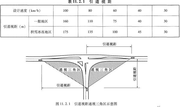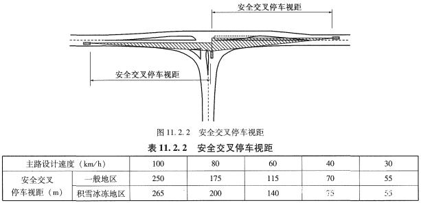 《細(xì)則》11.5.2條規(guī)定兩相鄰平面交叉的最小間距,包括設(shè)置加減速車道和交織車道,該規(guī)定值一般大于安全停車視距。