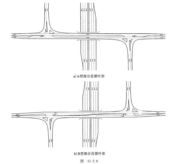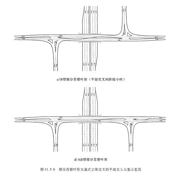 當(dāng)平面交叉不滿足設(shè)計(jì)通行能力要求時(shí),應(yīng)調(diào)整互通形式或增加立體交叉匝道,減少交叉沖突交通量。