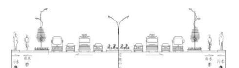新建道路其道路兩側的地塊大多還沒開發,道路控制紅線邊很少有現狀的建筑物,另外擬建道路下面也沒有已建其它管線制約,所以雨污水管道位置設計不受其他因素干擾,只有按照滿足管道的設計規范要求和收水功能、節約工程造價、給其它管線預留布置空間的 3 個原則設計即可。針對不同的路幅寬度,詳述如下:
