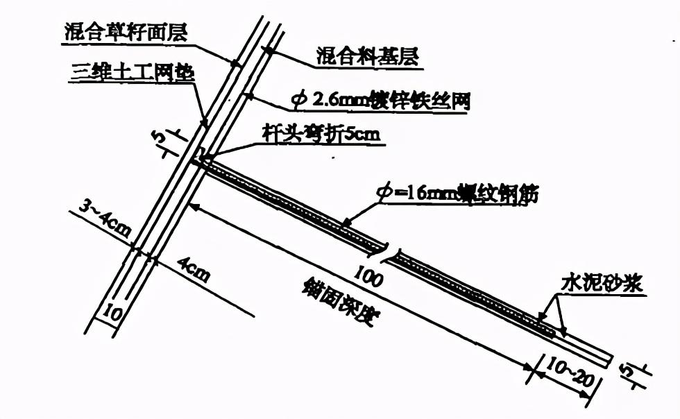 有錨固植草防護邊坡示意圖