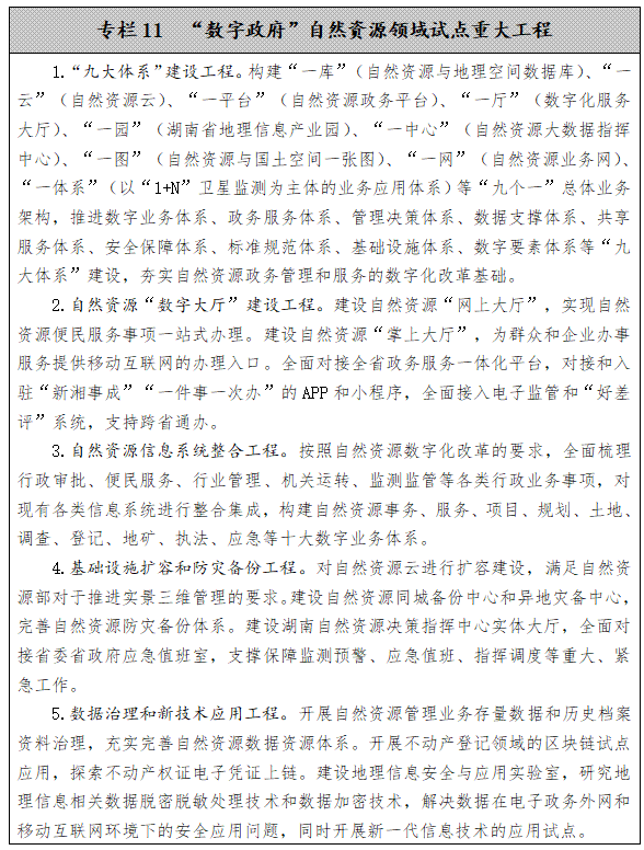 ——自然資源領域“數字政府”基本完成。全面推動自然資源工作數字化轉型,基本實現改革系統化、資源數據化、業務標準化、審批平臺化、應用網絡化、服務便捷化目標,力爭成為全國自然資源系統“數字政府”建設標桿。